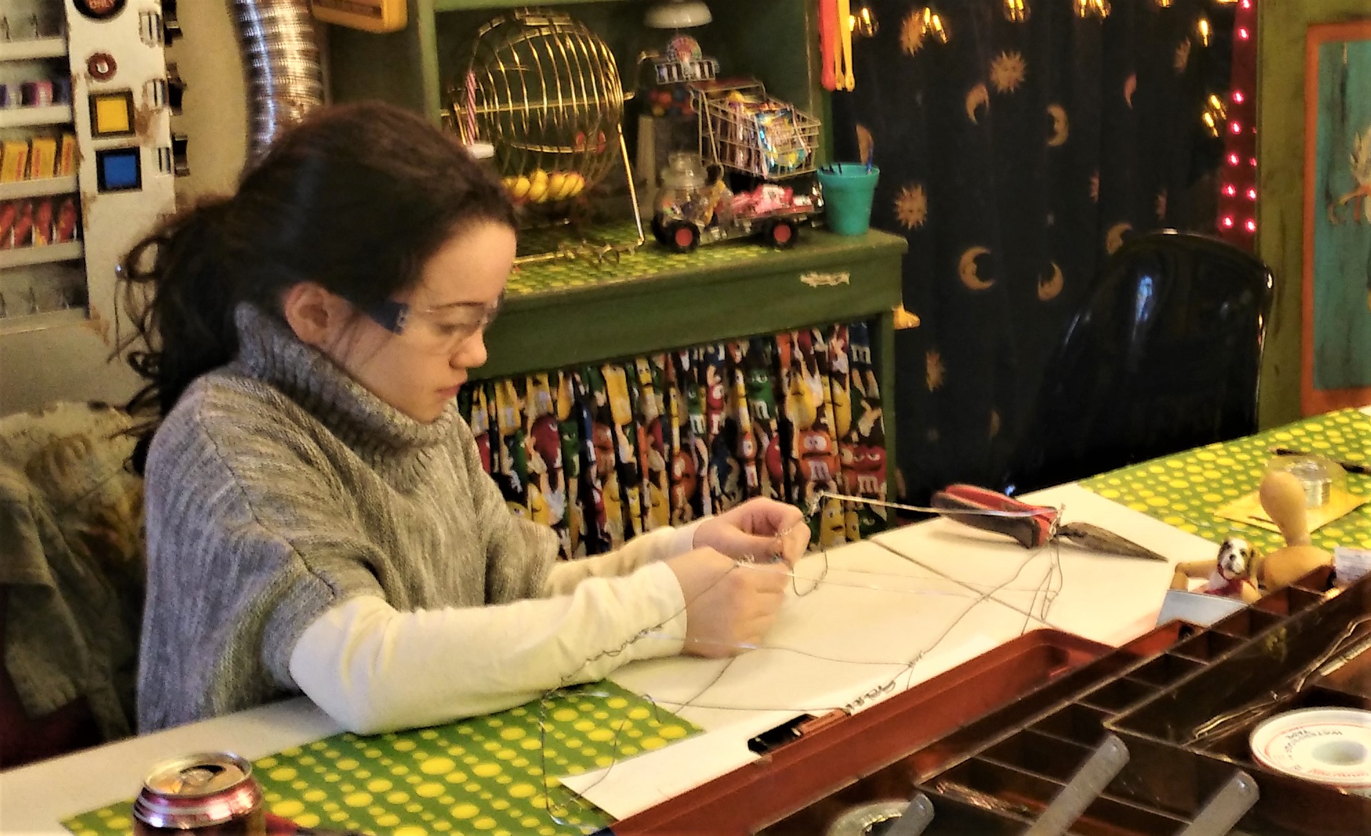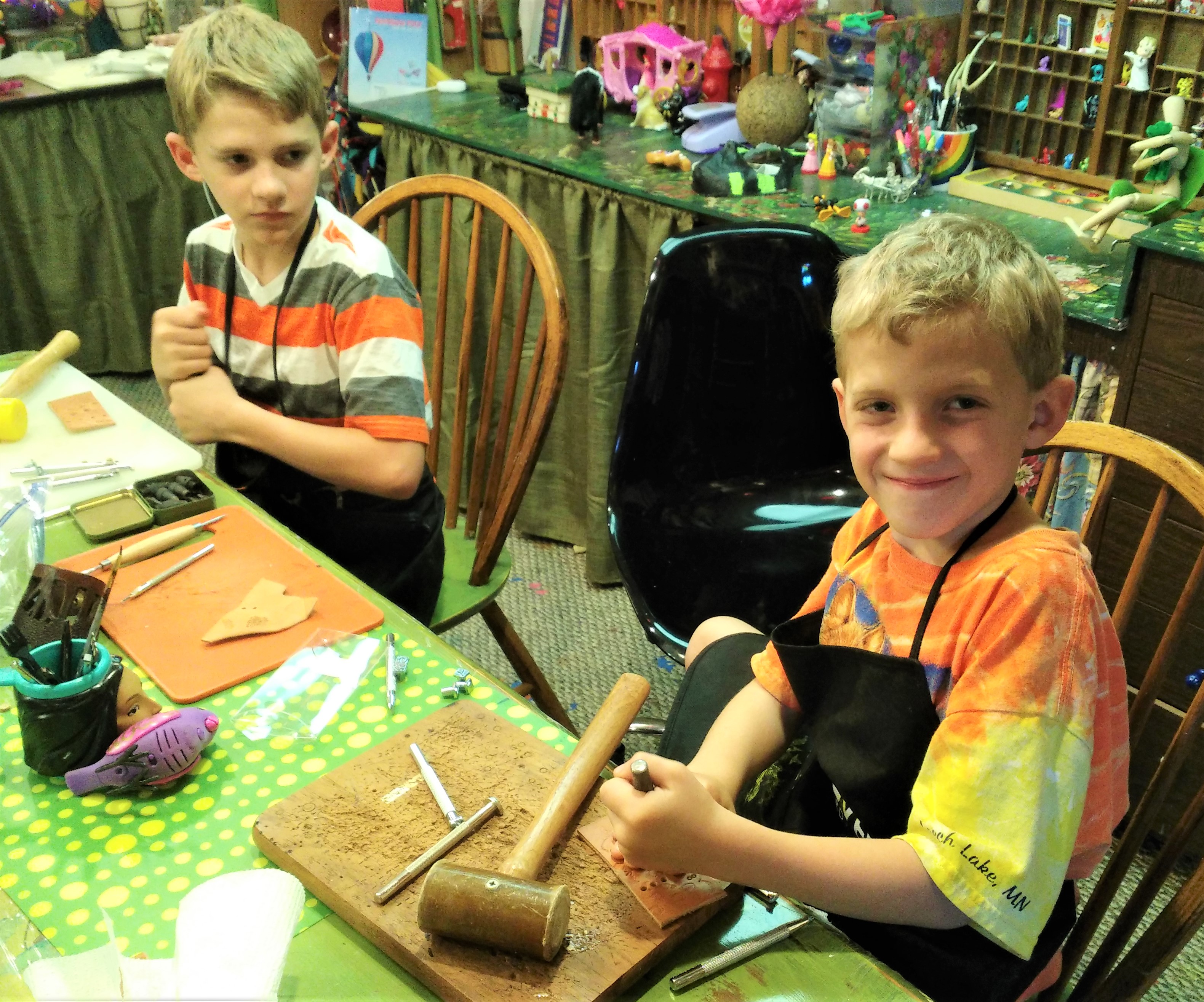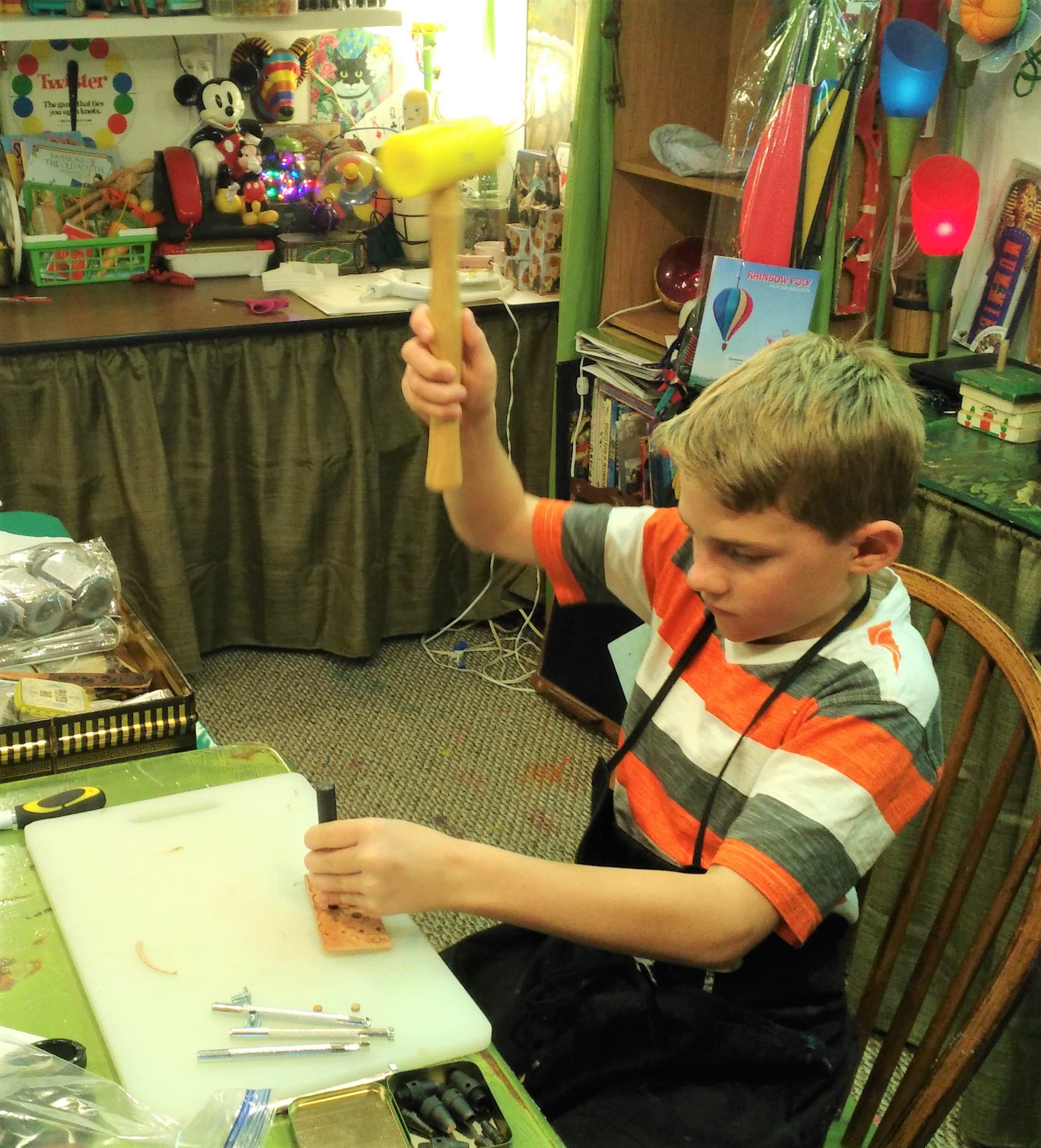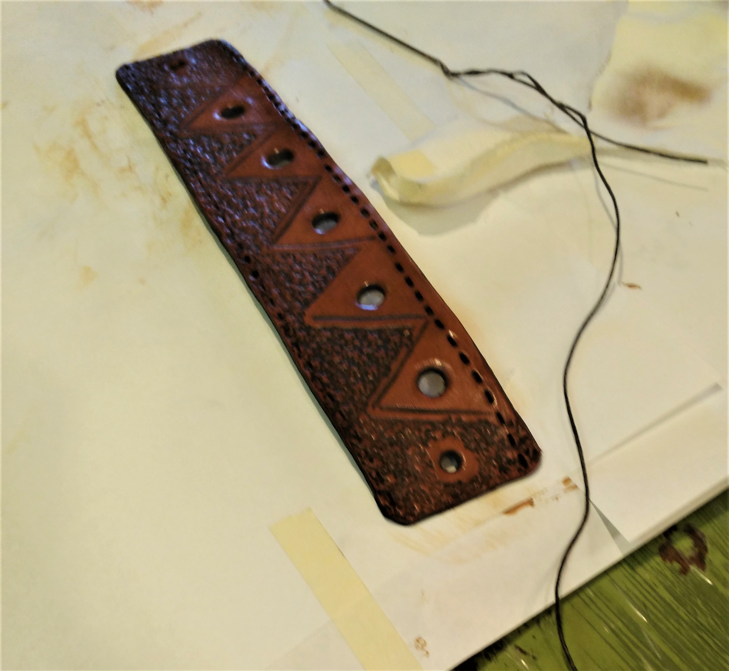 Learning how to cut, stamp, dye and sew leather during their various projects.