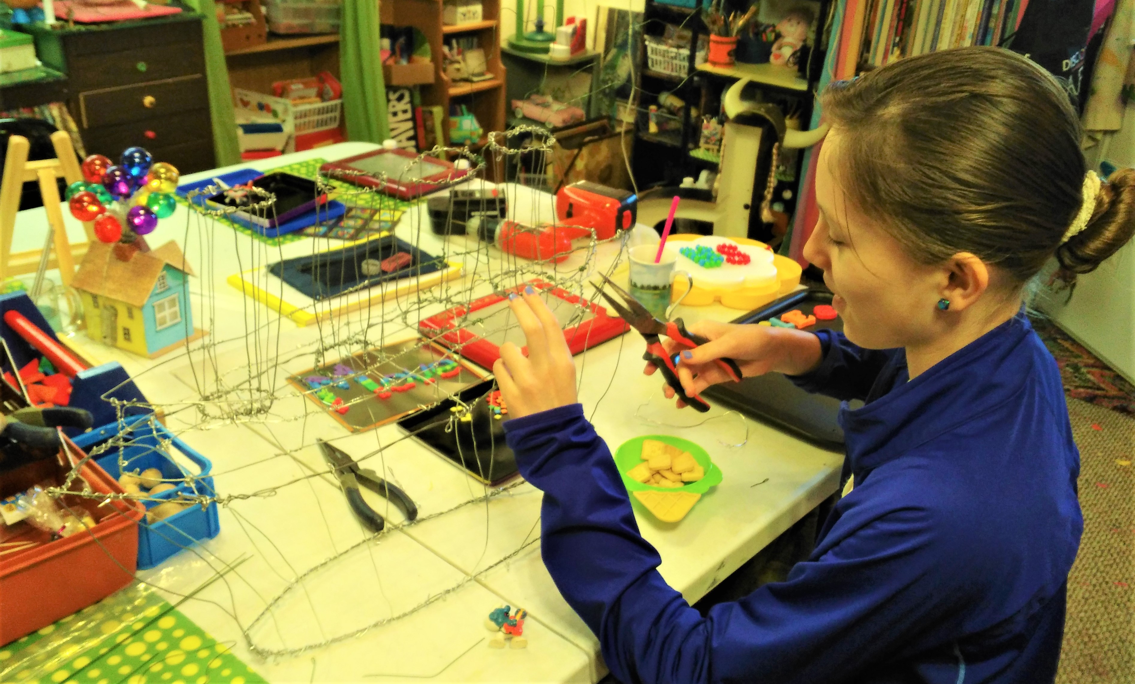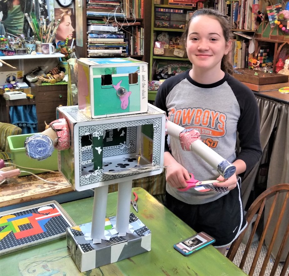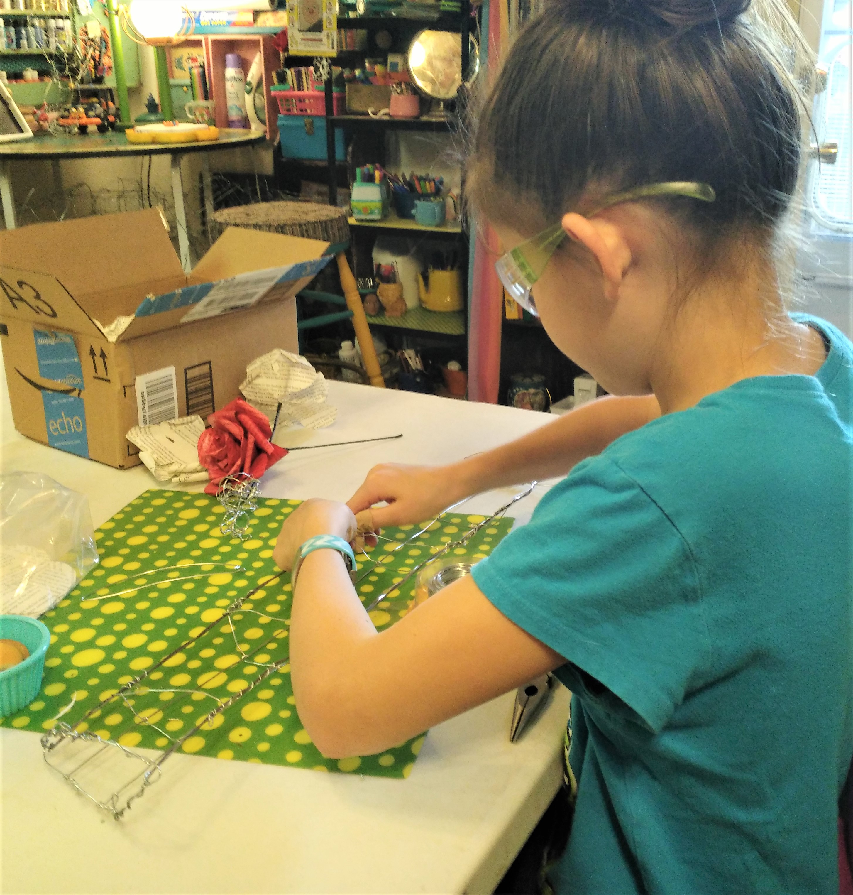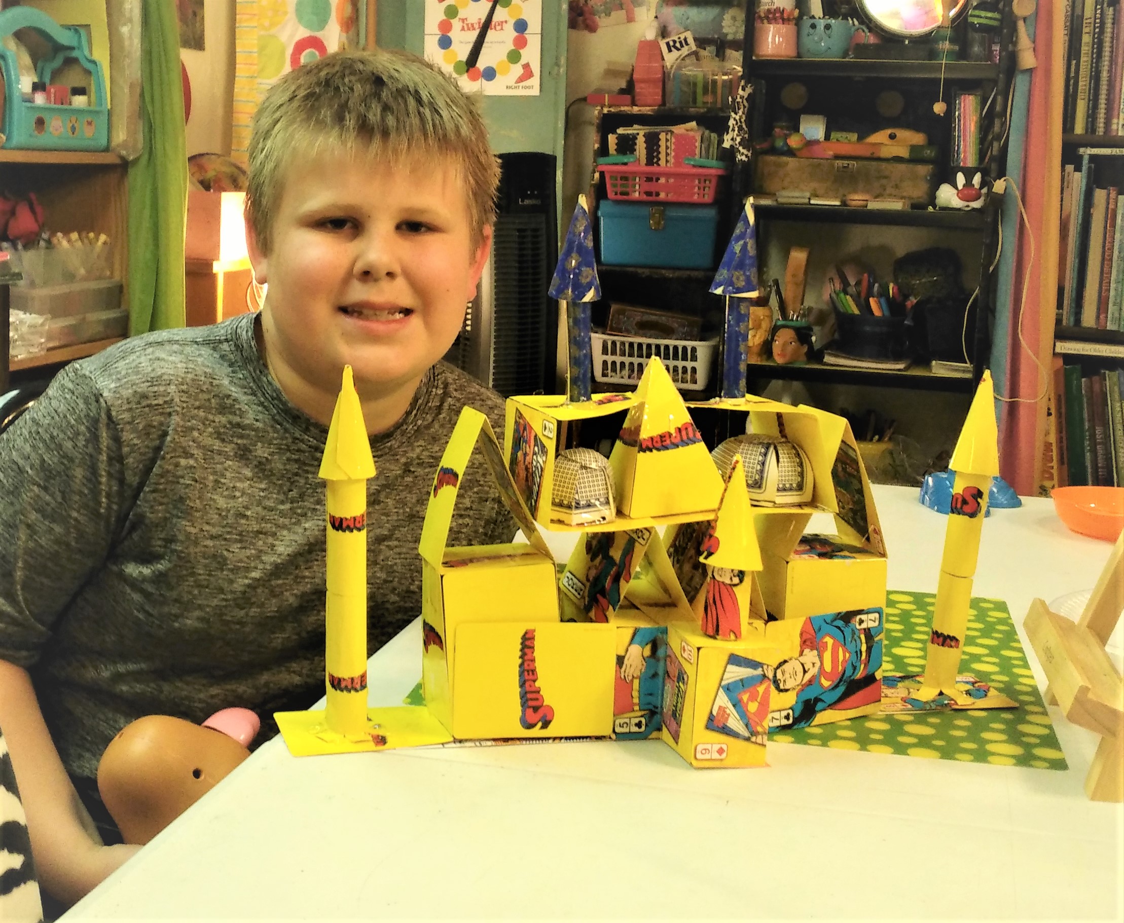 The kids used found things and trash and created a structure of some sort out of it. They focused on design, stability, and composition.